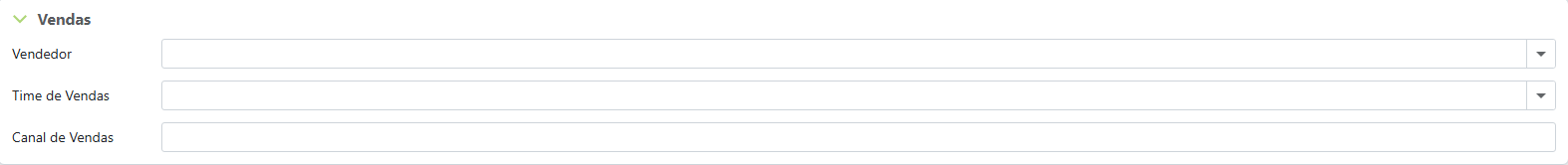 - Time de Vendas: Permite associar o vendedor à equipe da qual faz parte, facilitando a organização interna.
